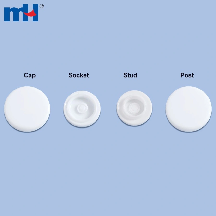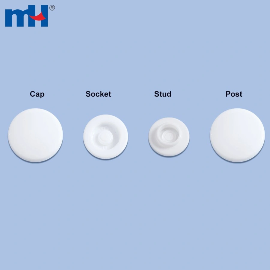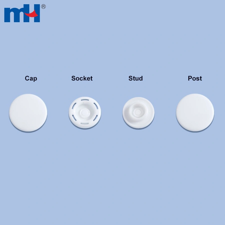 Application: Plastic snap buttons, also known as snap fasteners or press buttons, are often used as a substitute for traditional buttons to fasten clothing and other items. They can be used on many different things, including: