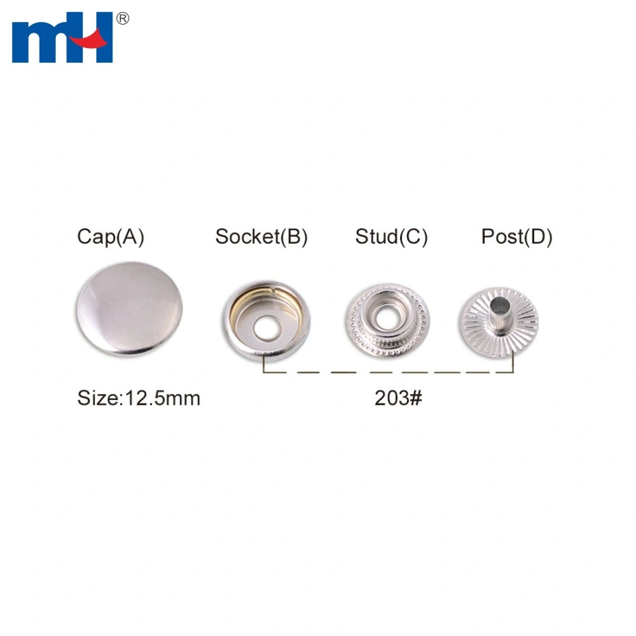 - Stud (Male Part): The stud is the part that snaps into the socket. It is usually attached to the fabric using the post. The stud ensures a secure connection when pressed into the socket.